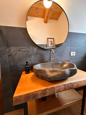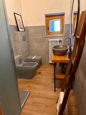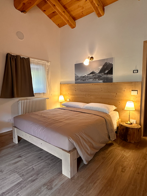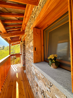 Baita di montagna immersa nei pascoli alpini, ristrutturata recentemente in chiave moderna ma con i criteri tipici dell'Alta valle Po: pietra a vista